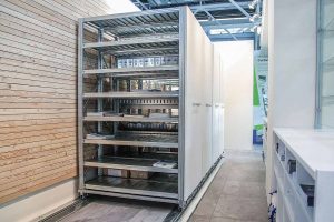 Base mobile modulaire augmente la capacité de stockage tout en maintenant l'accessibilité inchangée. Ce sont des solutions particulièrement adaptées pour optimiser l’espace de locaux de petite taille, tels que les bureaux, les archives, etc.